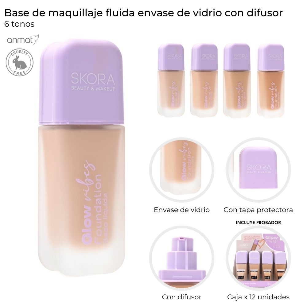 Detalle: Base De Maquillaje Fluida Envase De Vidrio Con Difusor
